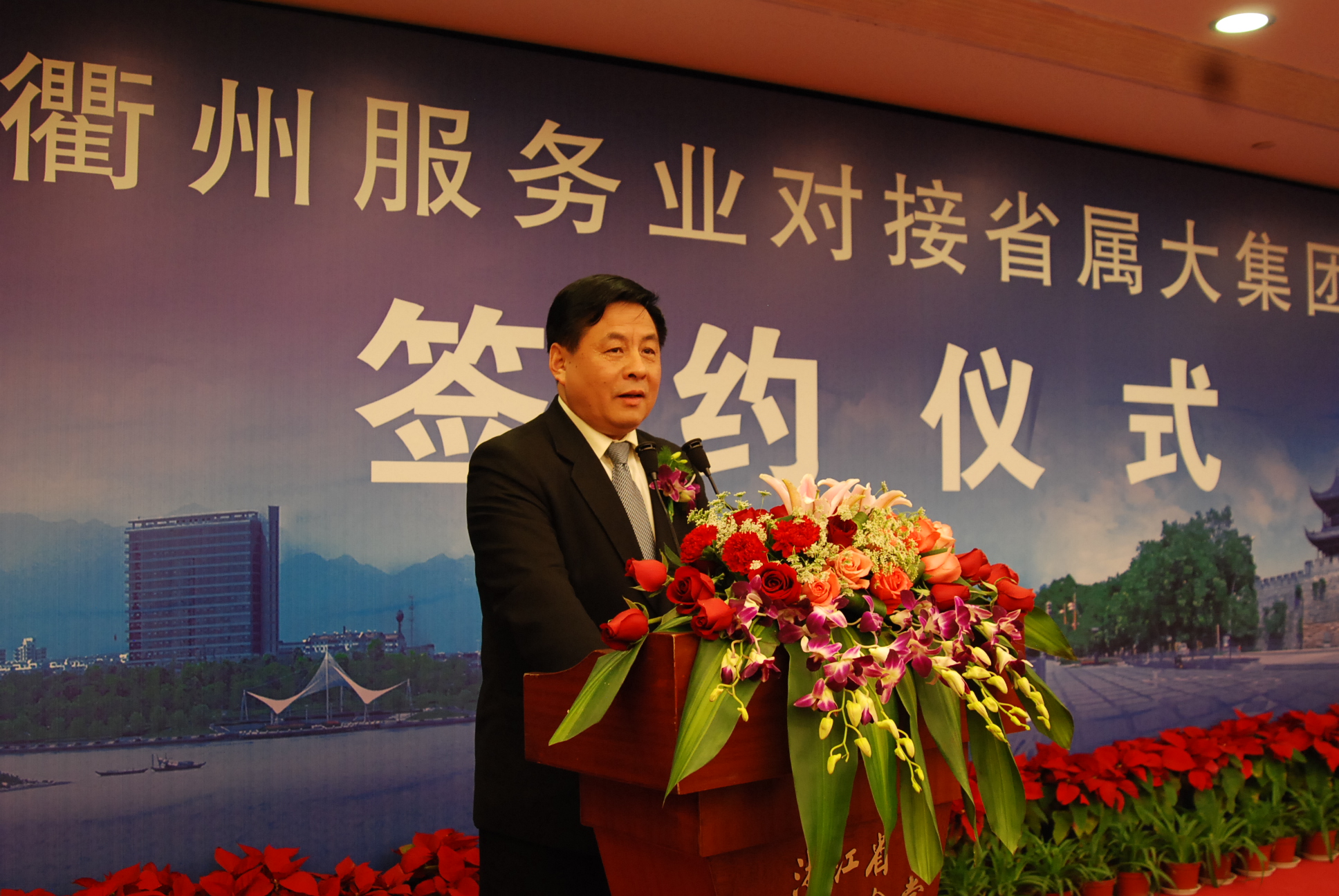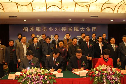 1月18日,衢州服務(wù)業(yè)對(duì)接浙江省屬大集團(tuán)簽約儀式在省人民大會(huì)堂舉行。省委常委、副省長(zhǎng)葛慧君出席儀式并講話,省政府副秘書長(zhǎng)陳龍,省國(guó)資委主任陳正興,集團(tuán)公司胡江潮董事長(zhǎng)、隋劍光總經(jīng)理、陳敏副總經(jīng)理、沈光明副總經(jīng)理,衢州市四套班子領(lǐng)導(dǎo),省級(jí)相關(guān)部門負(fù)責(zé)人等出席儀式。胡江潮董事長(zhǎng)在簽約儀式上致辭,隋劍光總經(jīng)理代表集團(tuán)公司與衢州市政府簽訂戰(zhàn)略合作協(xié)議。
