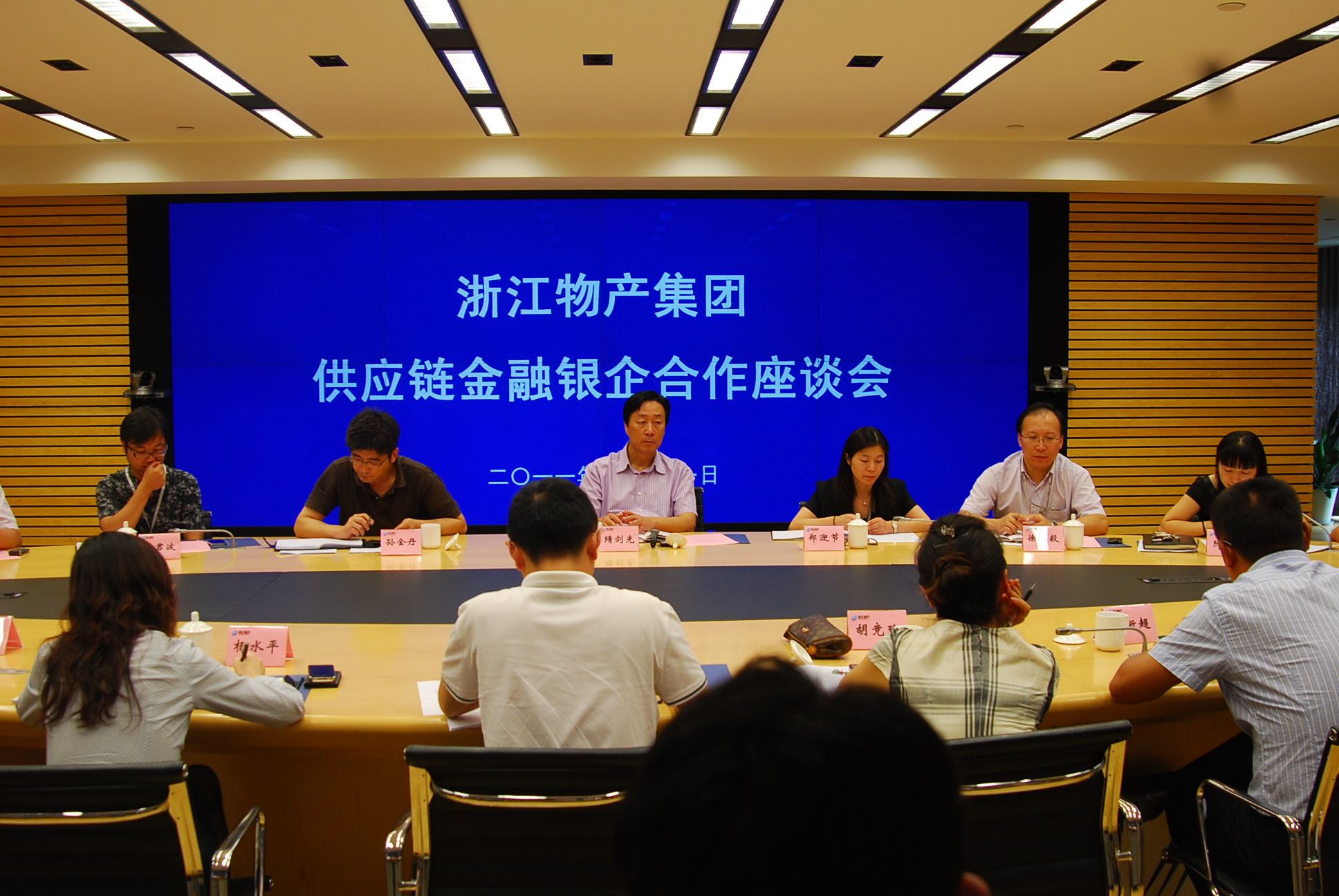 8月11日下午,受胡江潮董事長的委托,集團公司副董事長、總經(jīng)理隋劍光邀請工行、中行、農(nóng)行、建行、光大、招行、華夏和杭州銀行等8大銀行在杭機構(gòu)的業(yè)務(wù)負責(zé)人,舉行了“浙江物產(chǎn)集團深化銀企合作、深入推進供應(yīng)鏈金融座談會”。此次座談會是集團公司繼今年5月份出臺《供應(yīng)鏈金融實施意見》和6月份隋總帶隊走訪相關(guān)合作銀行后,大力推進供應(yīng)鏈金融的又一重要舉措。