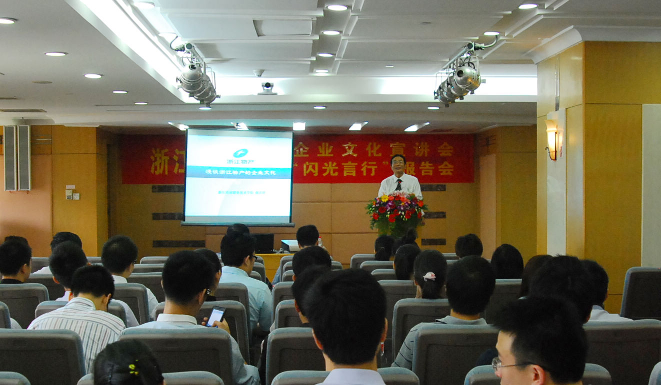 在企業(yè)文化宣講中,邵慶祥副院長從“認(rèn)知企業(yè)文化”、“浙江物產(chǎn)的企業(yè)文化”和“500強與企業(yè)員工”等3個方面,對企業(yè)文化及其重要作用、浙江物產(chǎn)企業(yè)文化內(nèi)涵和“世界500強”對企業(yè)員工的素質(zhì)要求等進行了深入的闡述。邵副院長的宣講旁征博引,深入淺出,既有對企業(yè)文化的哲理思考和世界500強企業(yè)文化建設(shè)成敗的深入剖析,又有對浙江物產(chǎn)企業(yè)文化建設(shè)成功實踐案例的提煉和總結(jié),為大家作了一場生動的企業(yè)文化宣講報告。
