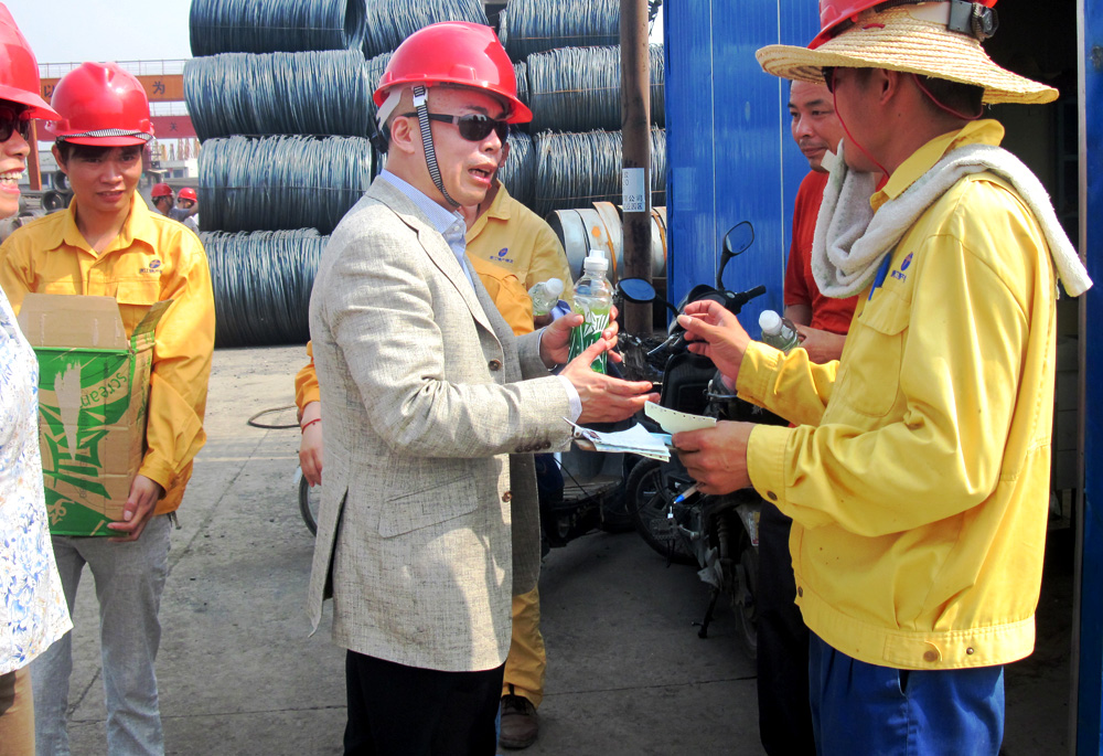 7月12日,集團(tuán)公司副總經(jīng)理張國強率集團(tuán)總部相關(guān)部門人員,冒著炎夏酷暑,赴杭州物流基地和浙金物流半山倉庫等檢查夏季安全生產(chǎn)。每到一處,張副總在認(rèn)真檢查安全工作、提出整改要求的同時,都與露天作業(yè)的一線員工親切握手問候,并遞上毛巾、防暑降溫清涼飲料,叮囑他們在炎熱的天氣里一定要注意作業(yè)安全、保重身體?!。ɡ钚》剑?