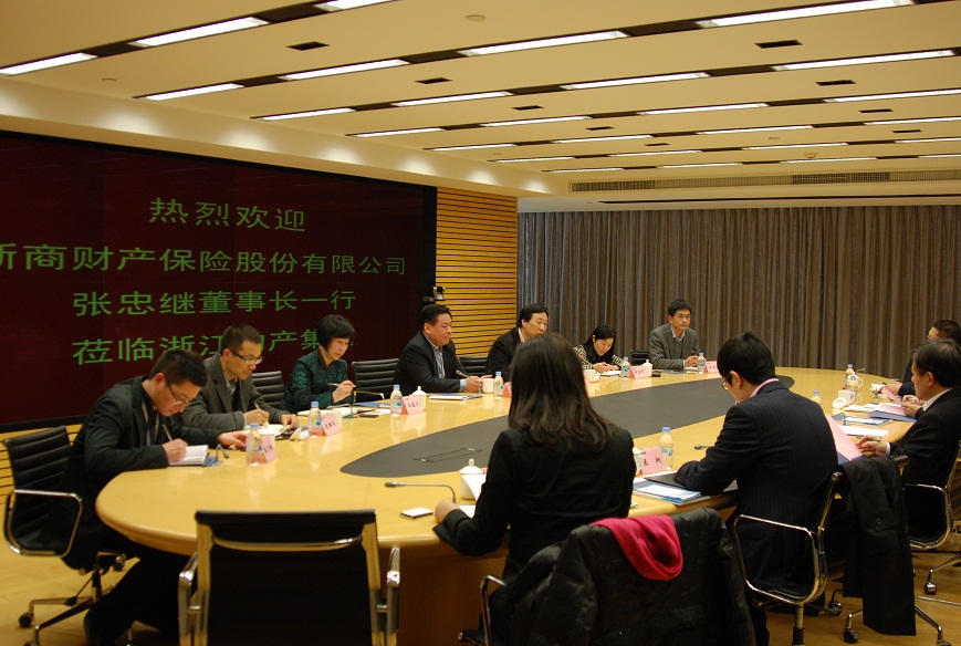 1月29日下午,集團(tuán)公司董事長胡江潮、總經(jīng)理隋劍光在總部視頻會議室,會見了來訪的浙商財(cái)產(chǎn)保險(xiǎn)股份有限公司董事長張忠繼、總裁屠錦成一行。