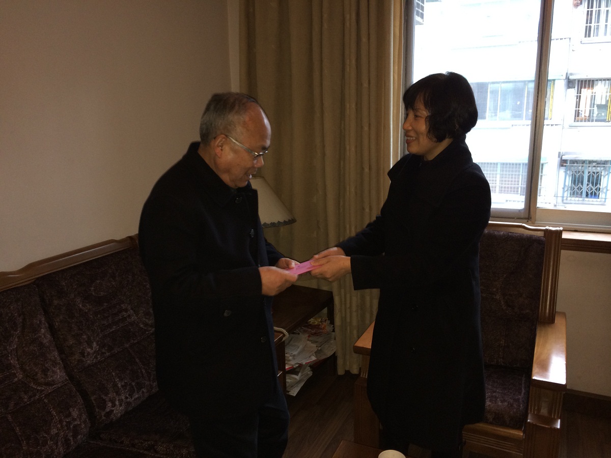 1月8日下午集團公司總經(jīng)理周冠女走訪、慰問原物資局副局長徐曉初。(裘文意 攝)