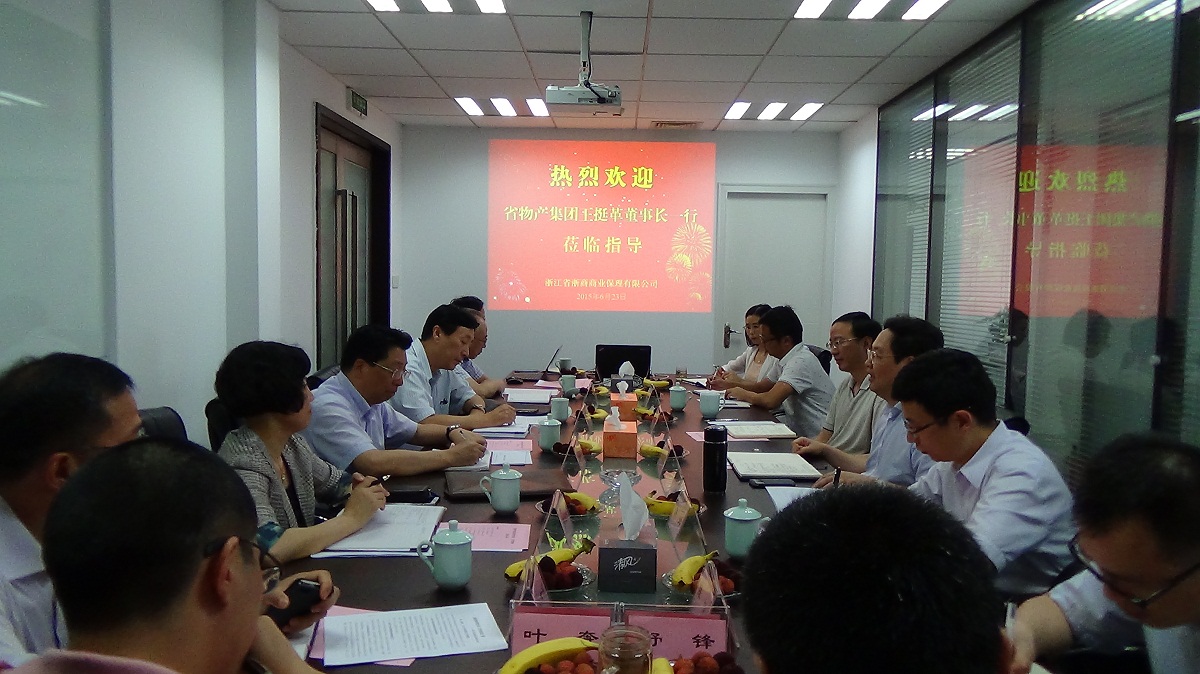 6月23日下午,集團(tuán)董事長(zhǎng)王挺革、副董事長(zhǎng)隋劍光、總經(jīng)理周冠女、紀(jì)委書記龔平及相關(guān)部門負(fù)責(zé)人赴參股公司浙商保理公司調(diào)研。省國貿(mào)集團(tuán)副總經(jīng)理、浙商保理公司董事長(zhǎng)黃道領(lǐng)和公司領(lǐng)導(dǎo)班子成員及各部門負(fù)責(zé)人參加調(diào)研座談。