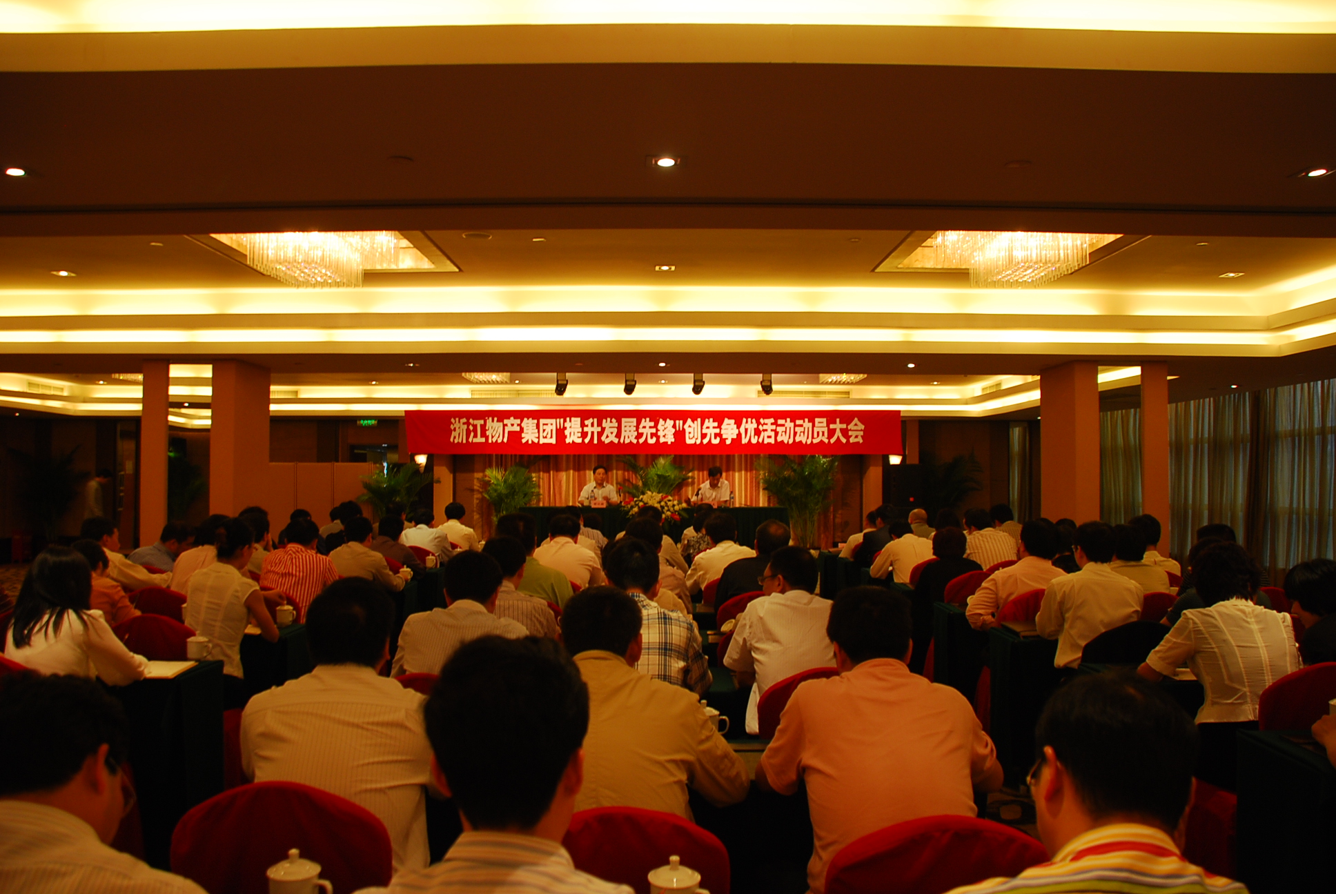 胡江潮在動員講話中指出,“后千億時代”的浙江物產,支撐發(fā)展的條件越來越高,面臨的風險越來越大,應對的挑戰(zhàn)越來越多,社會對企業(yè)的關注和要求也越來越高。因此,要在鞏固前些年轉型發(fā)展成果的基礎上,努力提升發(fā)展,實現“由做大向做強升華”。提升發(fā)展,是浙江物產未來一個時期深入貫徹落實科學發(fā)展觀、實現全面可持續(xù)發(fā)展的中心任務。為此,集團公司黨委決定,把這次開展黨內創(chuàng)先爭優(yōu)活動的主題確定為“提升發(fā)展先鋒”,目的就是為了體現黨建工作“融入中心”的要求,充分發(fā)揮集團各級黨組織和廣大黨員在深入推進流通產業(yè)化、促進企業(yè)深化轉型和提升發(fā)展中的政治核心、戰(zhàn)斗堡壘作用和先鋒模范作用,努力在提升發(fā)展中創(chuàng)業(yè)創(chuàng)新建功。